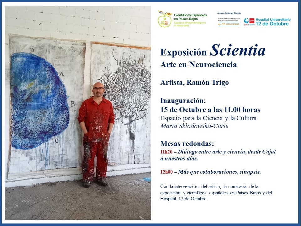 El próximo miércoles, 15 de octubre a las 11.00 h, tendrá lugar la inauguración de la exposición Scientia. Arte en neurociencia, organizada por científicos españoles en Países Bajos y el artista Ramón Trigo con participación del Instituto Clínico de Neurociencia del Hospital.